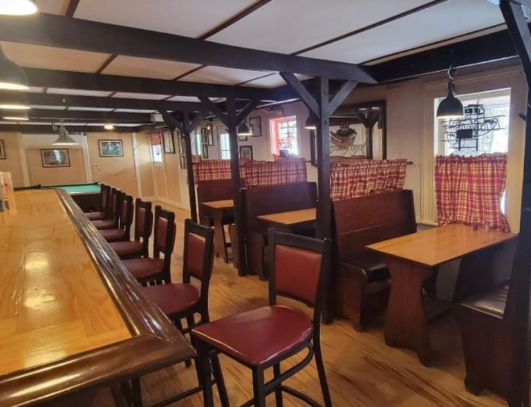 Built in 1856, the structure is rich with historic charm and quaint details. A long stone porch welcomes guests, while a working fireplace anchors the main dining room. Three dining rooms and a long tavern bar accommodate more than 100 patrons. A beer garden behind the tavern can sit another 75.